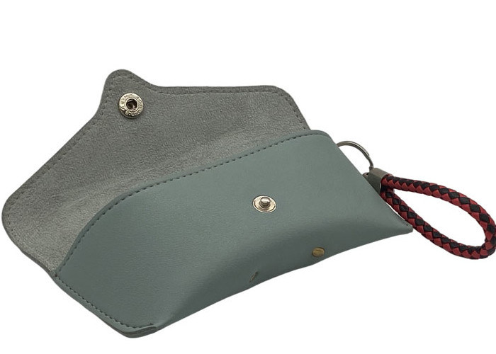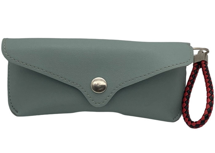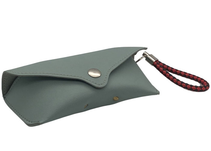 Model A012 toptan fabrika kaynağı 176*76*50mm boyutlarında düğmeli ve askılı deri güneş gözlüğü çantası.